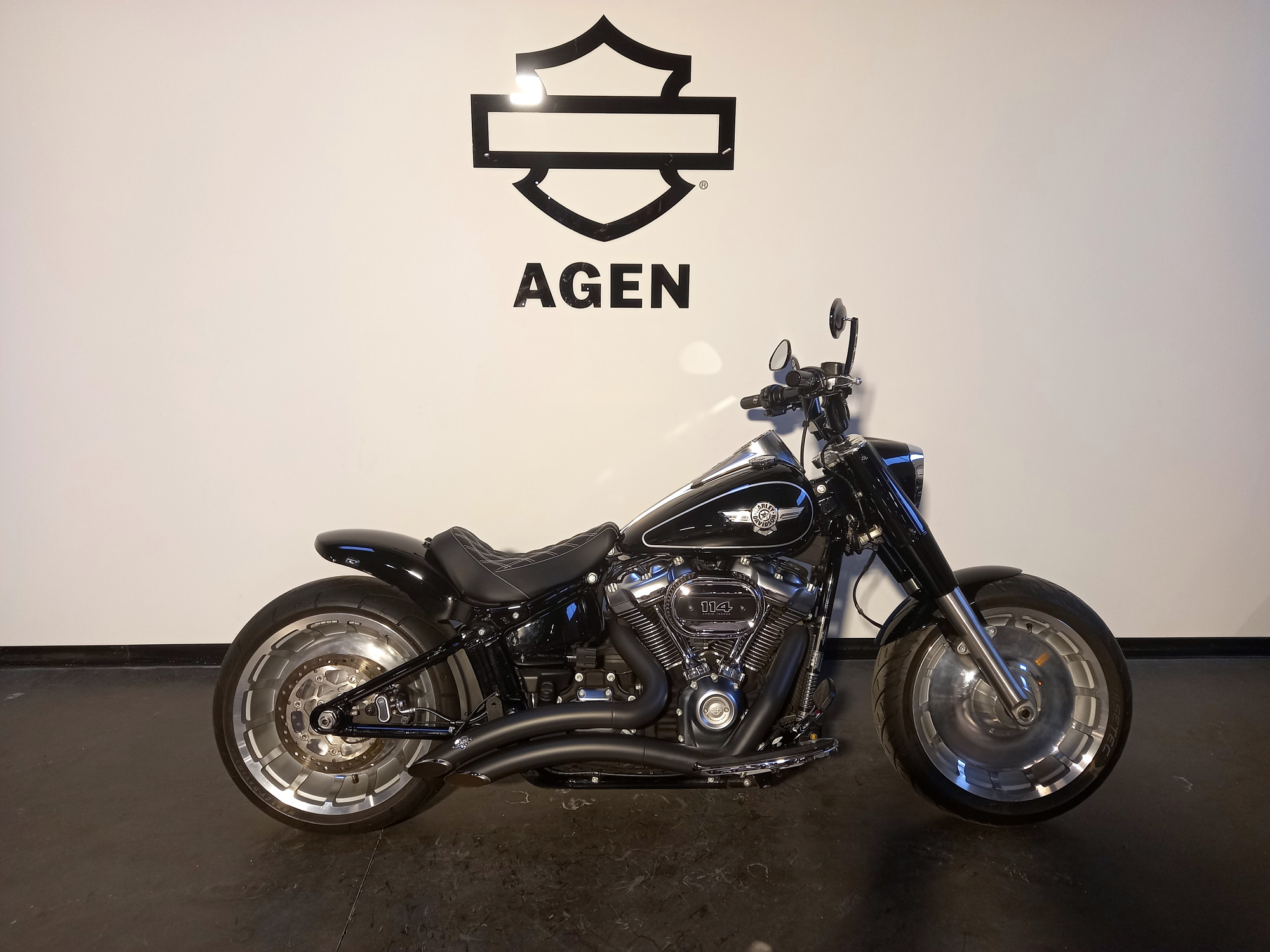 14 800km - 1868 cm³ - modèle 2018Garde boue arrière court avec selle perso Guidon custom Clignotants led avant et arrière Support de plaque déporté Échappement Big Radius